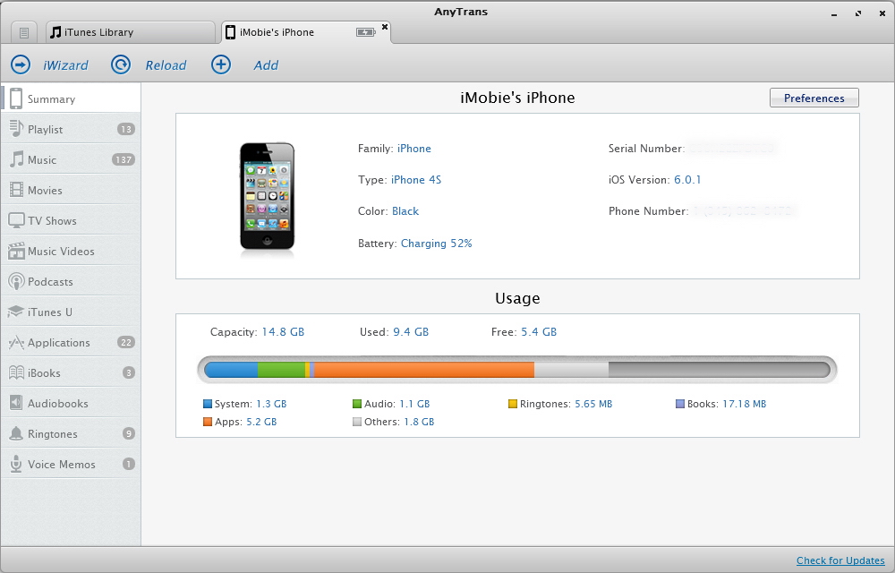 iMobie AnyTrans v1.7 英文正式版(設備傳輸軟體)