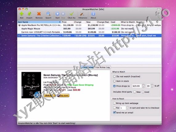 • PriceWatcher for Amazon v1.7.4 MacOSX 英文正式版(比較亞馬遜價格高低變化並作出提醒的實用軟體)