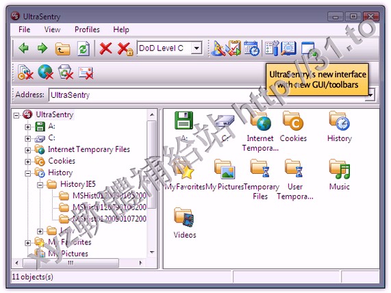 UltraSentry 是一款先進的軍事等級的磁碟和註冊表清理工具。可自由配置的安全設置